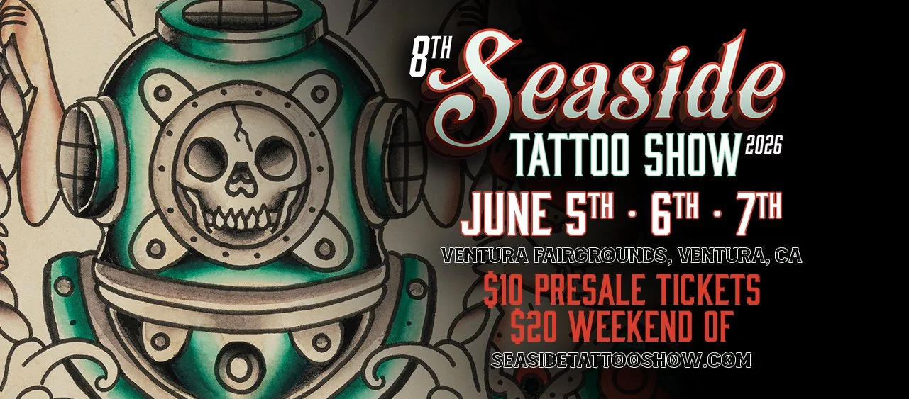 ….at the Ventura County Fairgrounds! Located at 10 W. Harbor Blvd. in beautiful Downtown Ventura, this event brings together world-class tattoo artists, vendors, and enthusiasts for an unforgettable weekend. Stay updated by following us on social media: @seasidetattooshow.